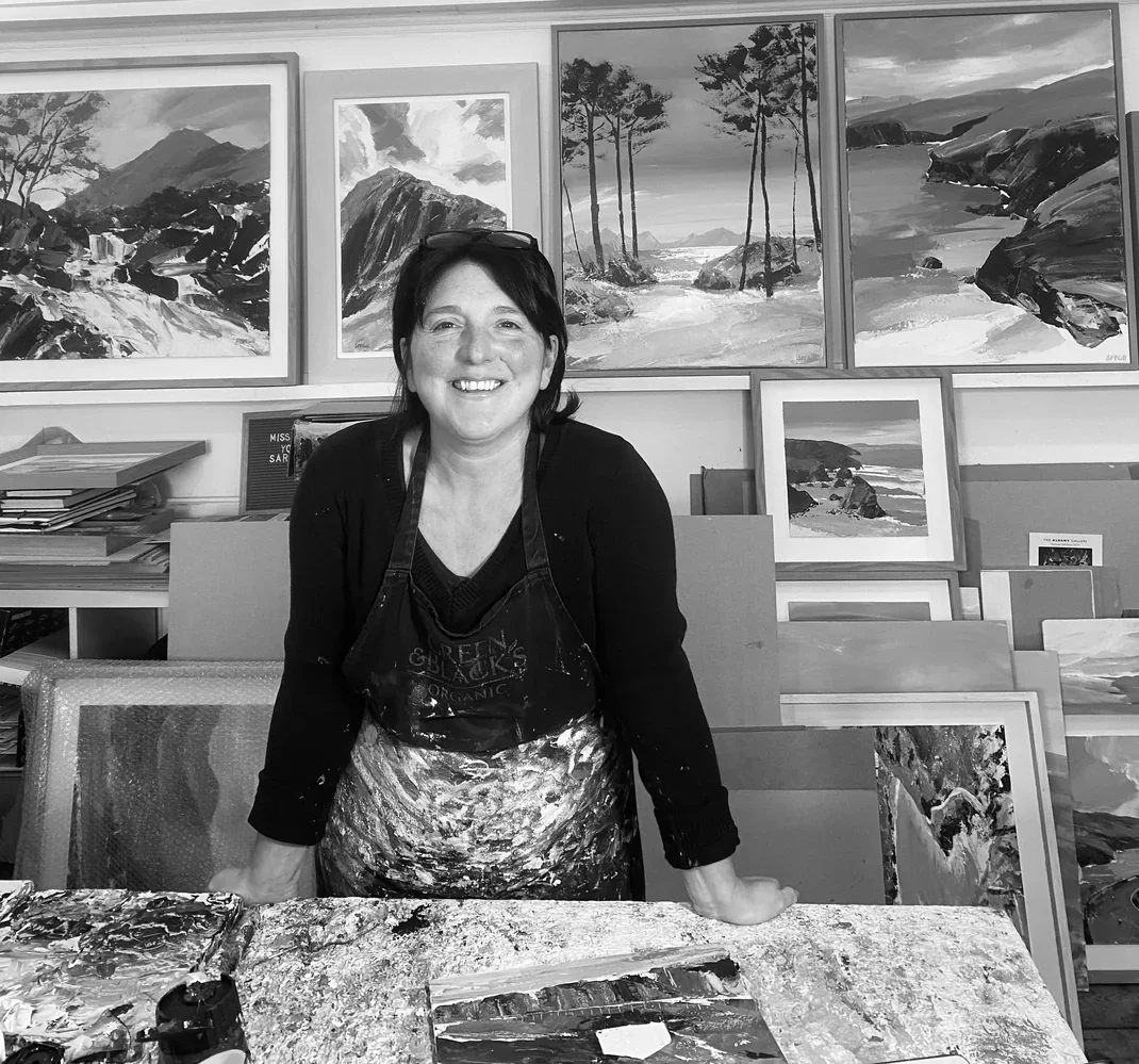 Much of her inspiration comes directly from the places where she loves to spend time - usually outdoors enjoying the coastline and mountains. Her work is often of the Welsh landscape and she also enjoys painting Scotland, Cornwall and Ireland.